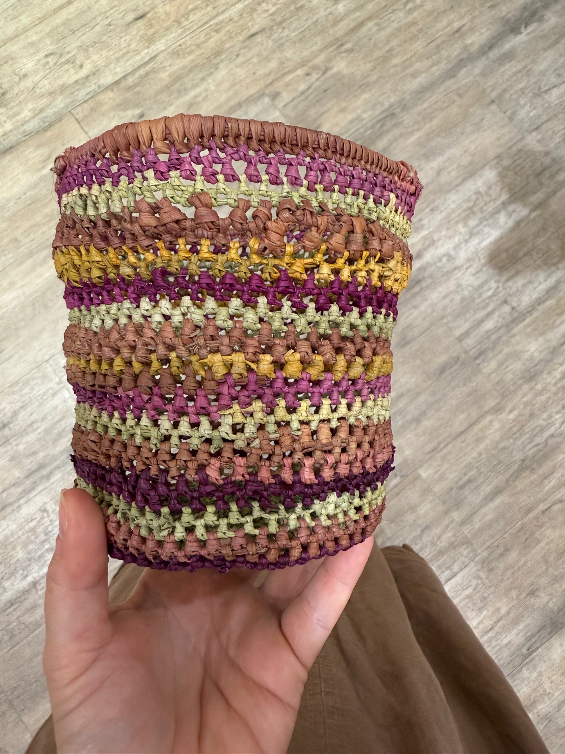 Josiephine’s baskets are both functional and decorative, showcasing intricate patterns and bold colors. These baskets are often used for practical purposes, like carrying food or storing items, but they also hold cultural significance, representing the connection between people, land, and tradition. The designs and weaving styles can tell stories, symbolise local flora and fauna, or express individuality and creativity.