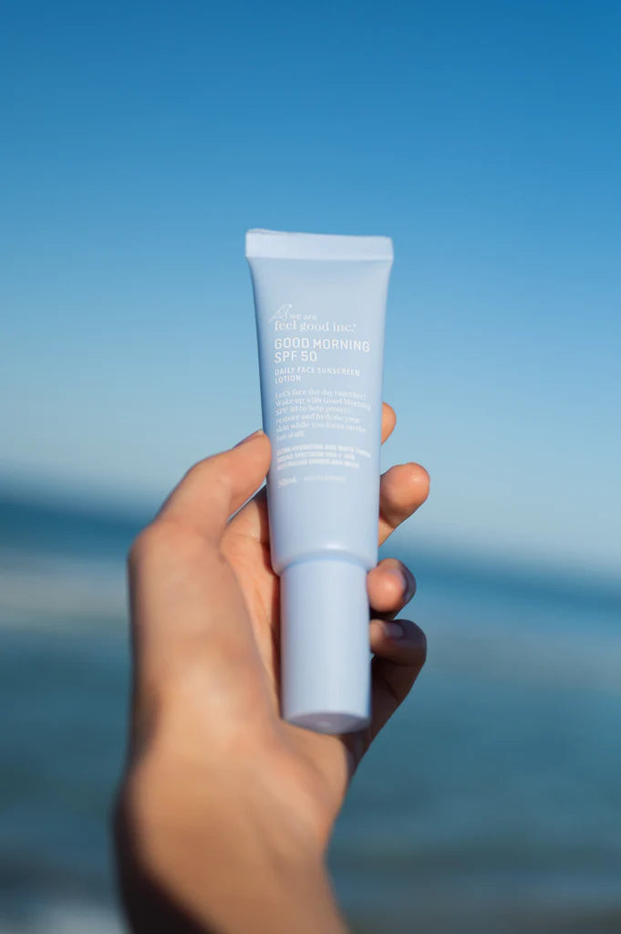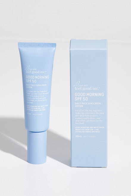 Wake up with Good Morning SPF 50 to help protect, restore and hydrate your skin while you focus on the fun stuff. Daily protection from the damaging effects of sunlight. With added Solanum Lycopersicum (Tomato Extract), Carnosine, Hyaluronic Acid, Simmondsia Chinensis (Jojoba) and Squalane.